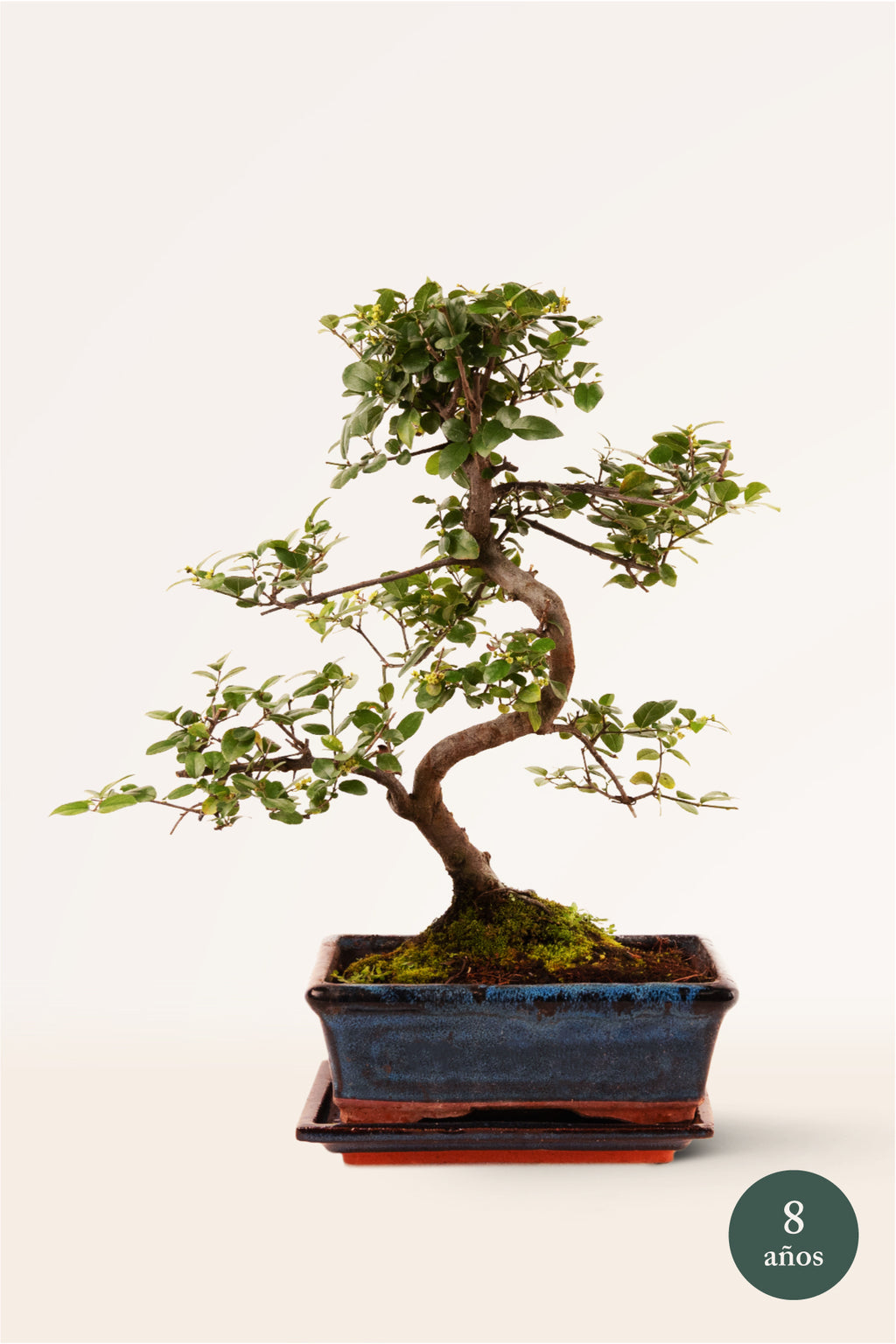 La forma y las medidas de los Bonsáis son aproximadas. El color y la forma de la maceta pueden variar un poco respecto al de la imagen. Y dependiendo de la época del año llegan en distintos estados de floración y fructificación.