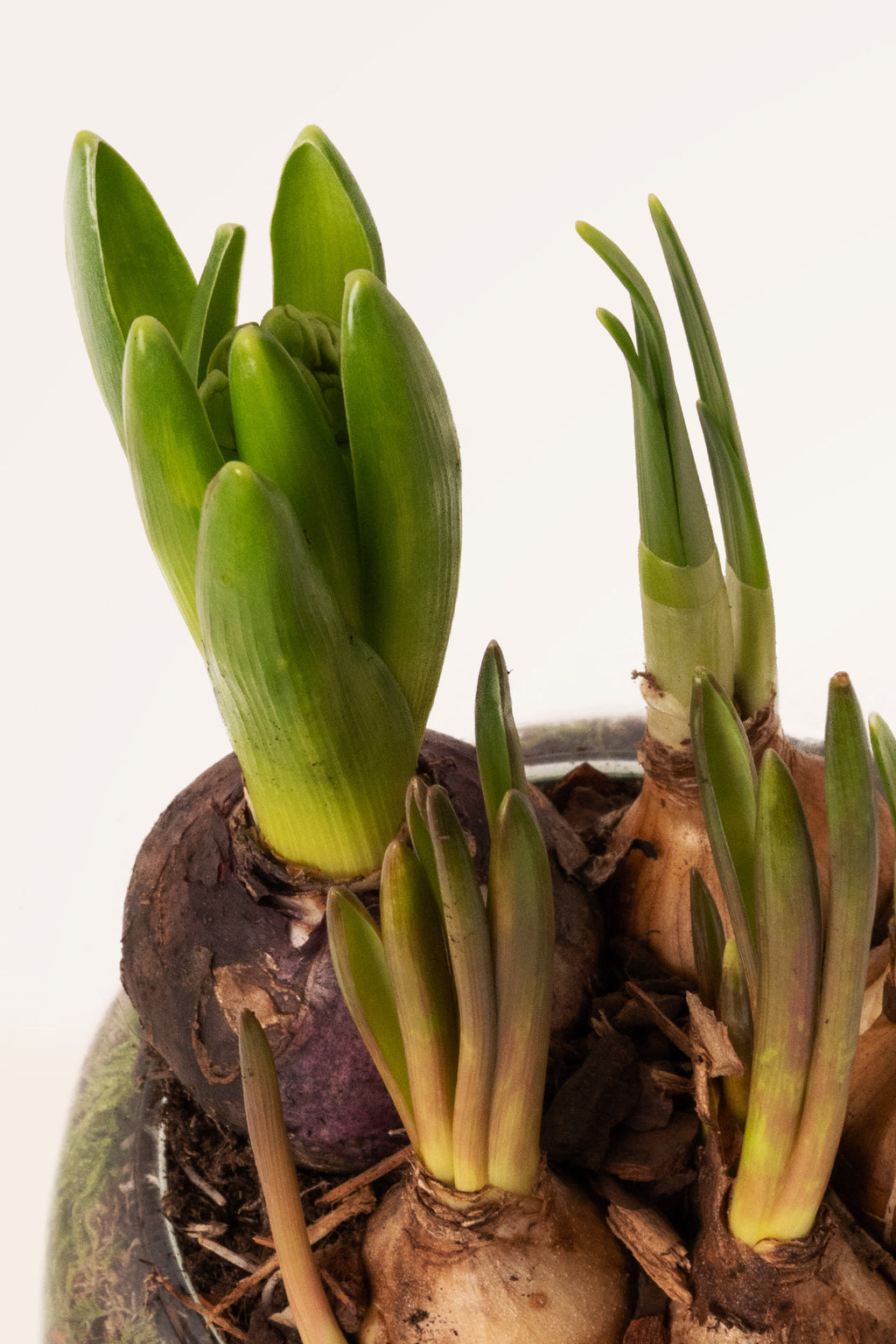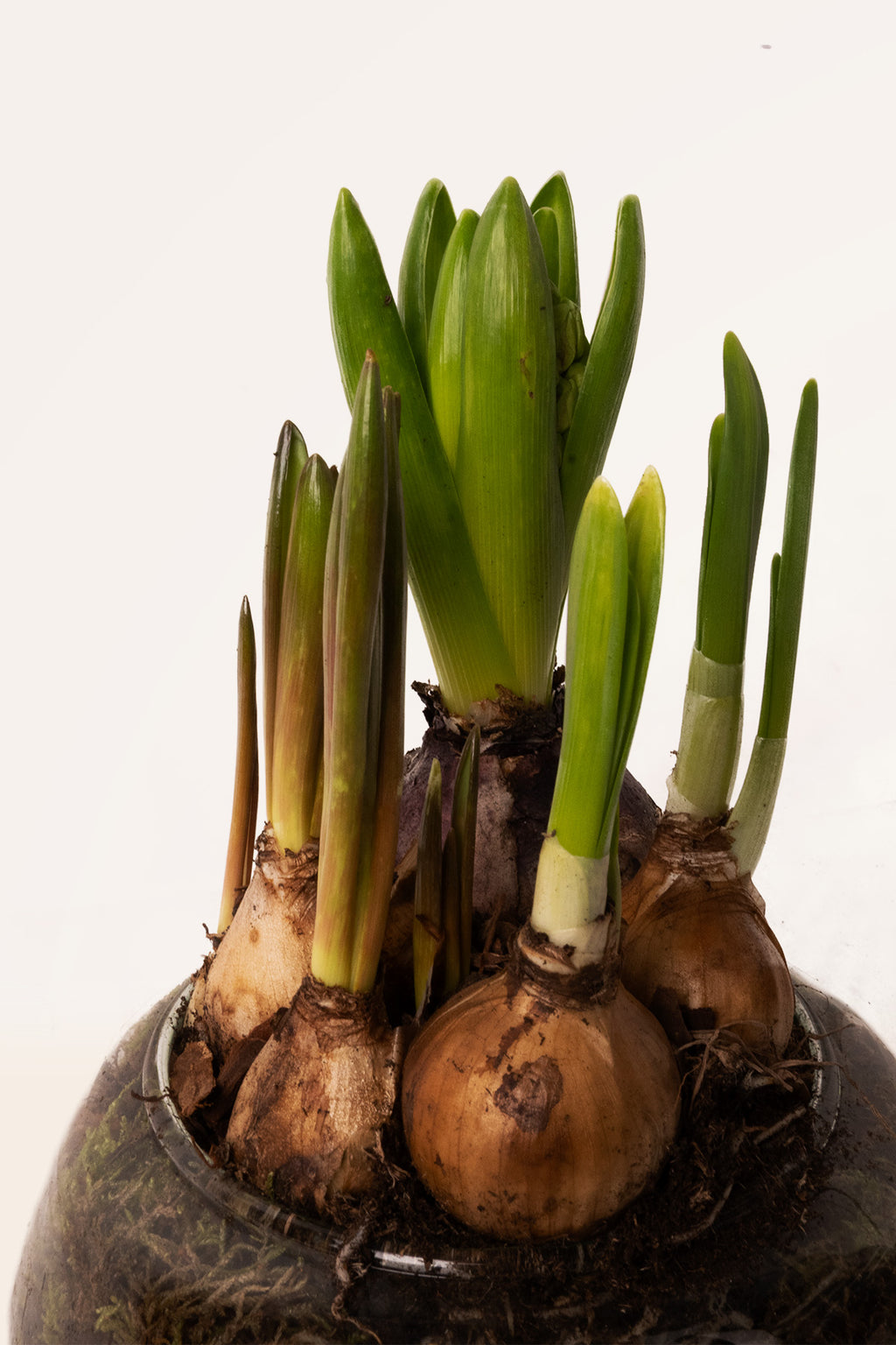 Cada composición es única, por lo que la altura de los brotes, el número de bulbos y el punto exacto de floración pueden variar ligeramente, asegurando una pieza exclusiva.