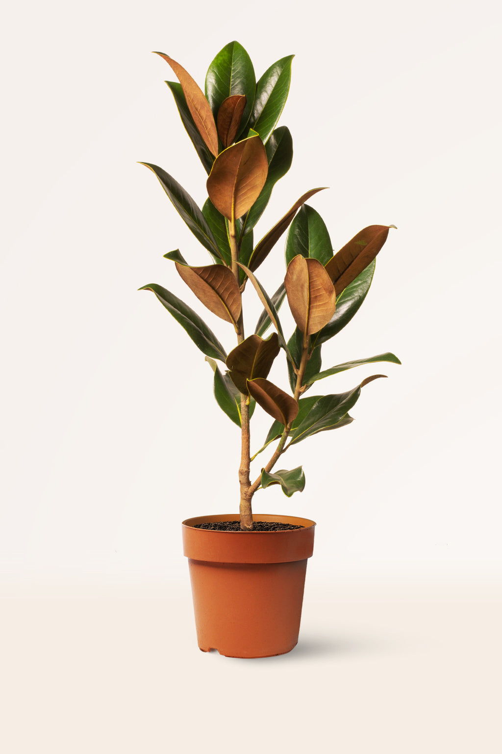 Las hojas de las Magnolias caen a medida que crecen, y rebrotan nuevas en la parte superior. La Magnolia se convierte en árbol, así que no tiene hojas en el tronco. Es normal que las hojas oscurezcan y tengan este color antes de caer. Te contamos más sobre sus cuidados a continuación.