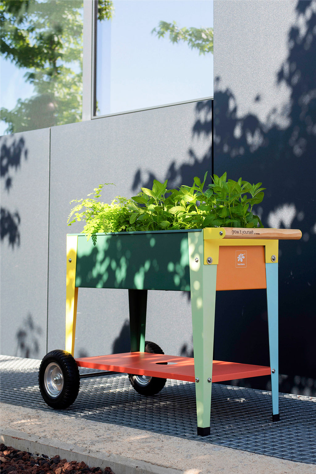 Esta mesa de cultivo para niños nos encanta porque la conexión con la naturaleza desde la infancia, transforma el aprendizaje en una experiencia sensorial y aporta un toque de color y vida a cualquier rincón exterior.