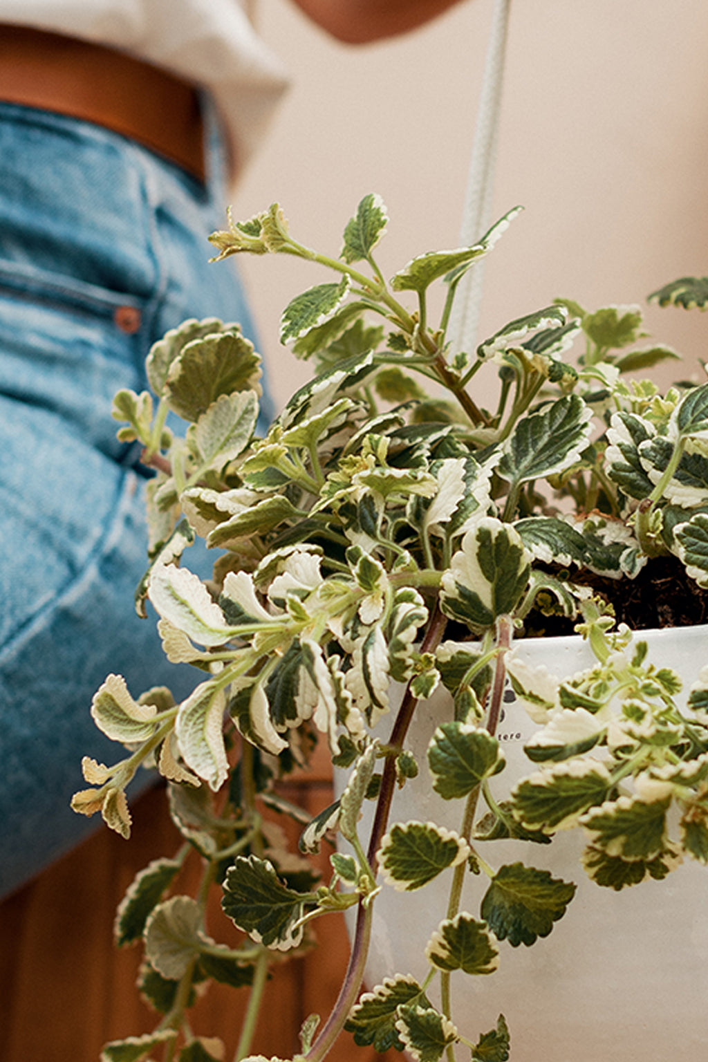 Plectranthus Madagascariensis es una planta colgante y aromática más conocida como la planta del incienso, gracias al aroma tan característico que desprende al rozar sus hojas. También conocida en algunas culturas como planta del dinero, el Plectranthus es una planta de interior que aportará además de estilo un olor especial y único.